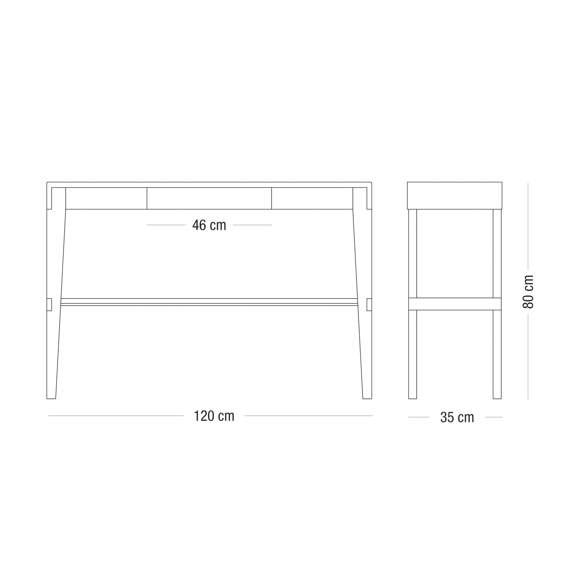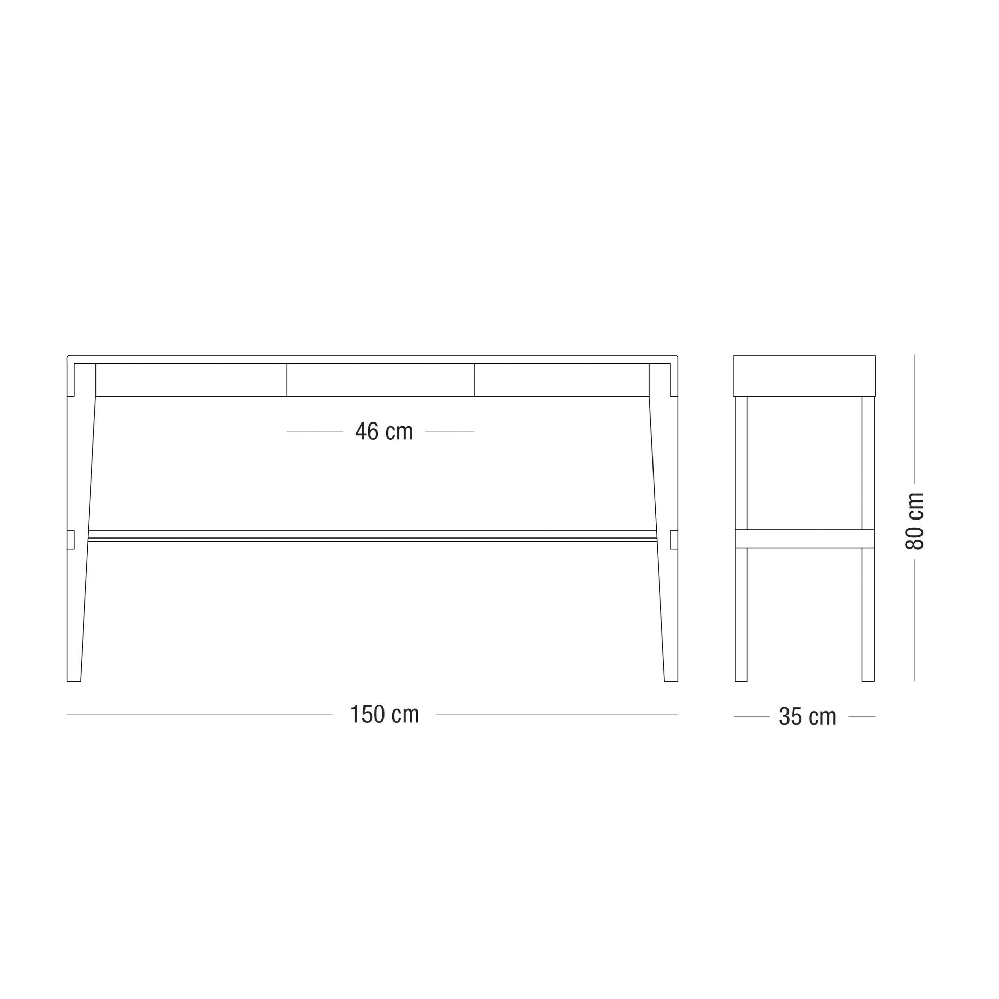 Dimensions : 150 x 35 x 80h cm / 120 x 35 x 80h cm