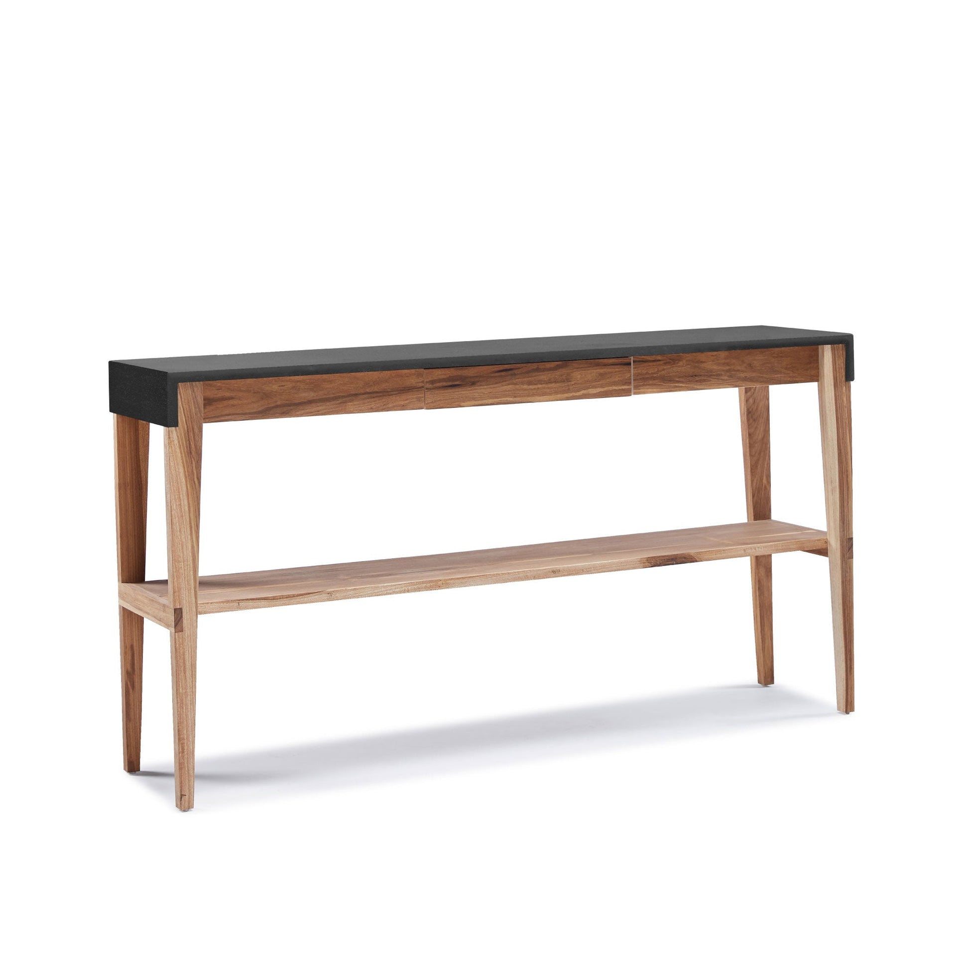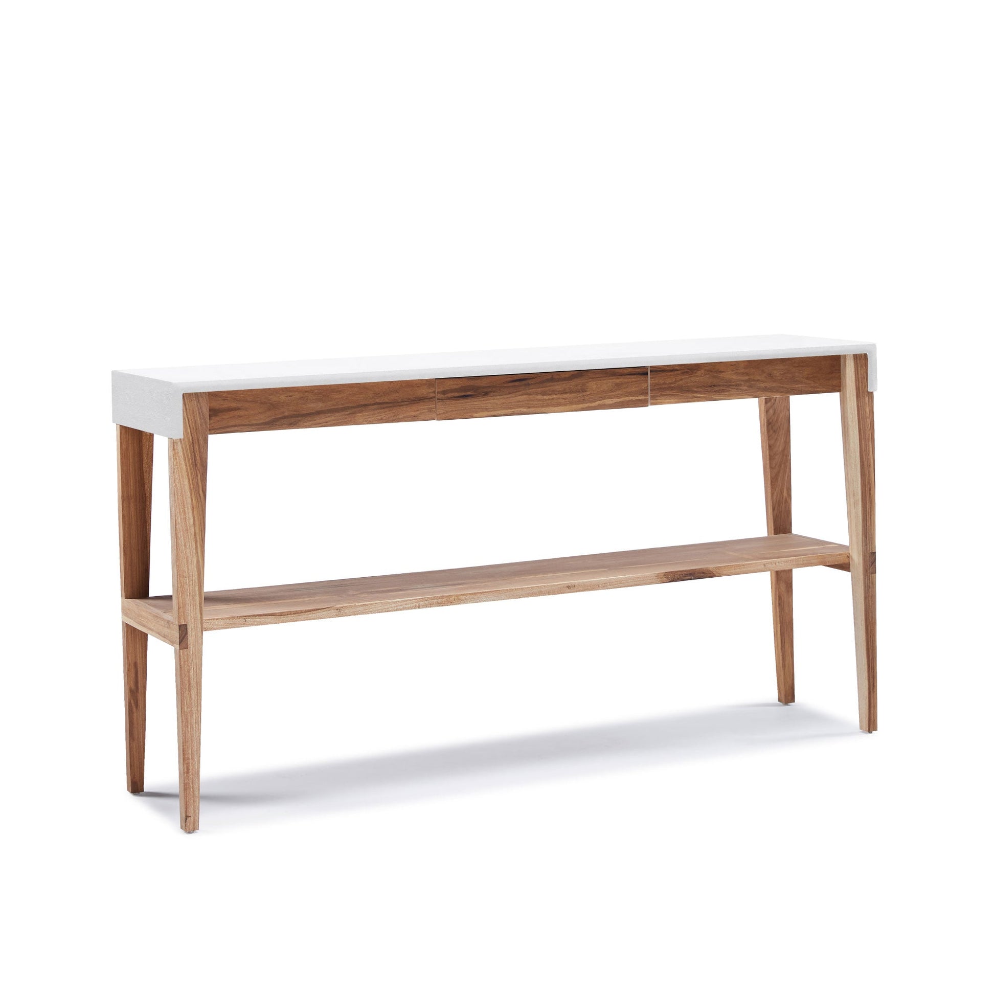 Description : un tiroir central et une étagère inférieure.