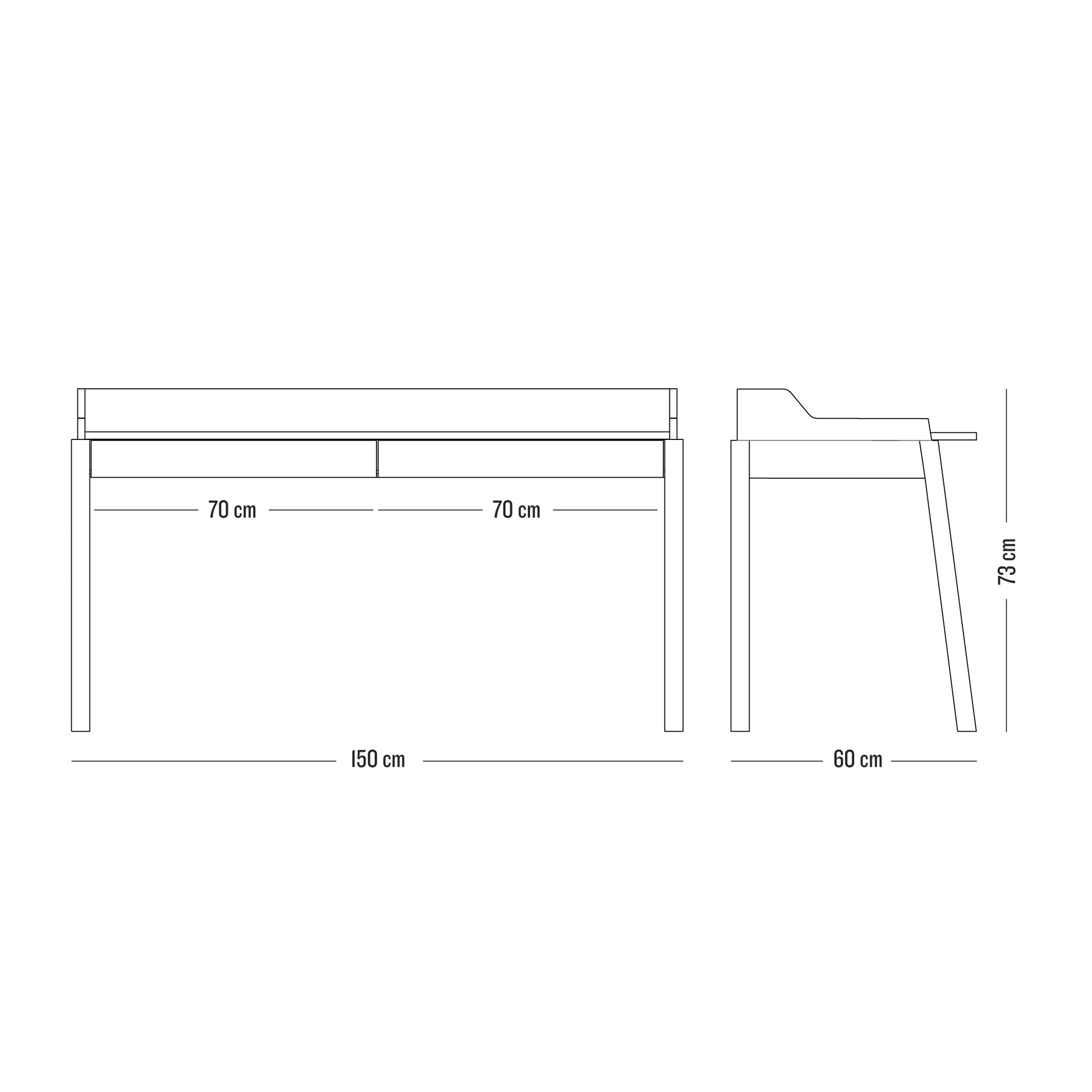 Dimensions: 150 x 60 x 73h cm Description: super desktop! With a pencil, two cable holes and a central drawer. Production time: 12 weeks.